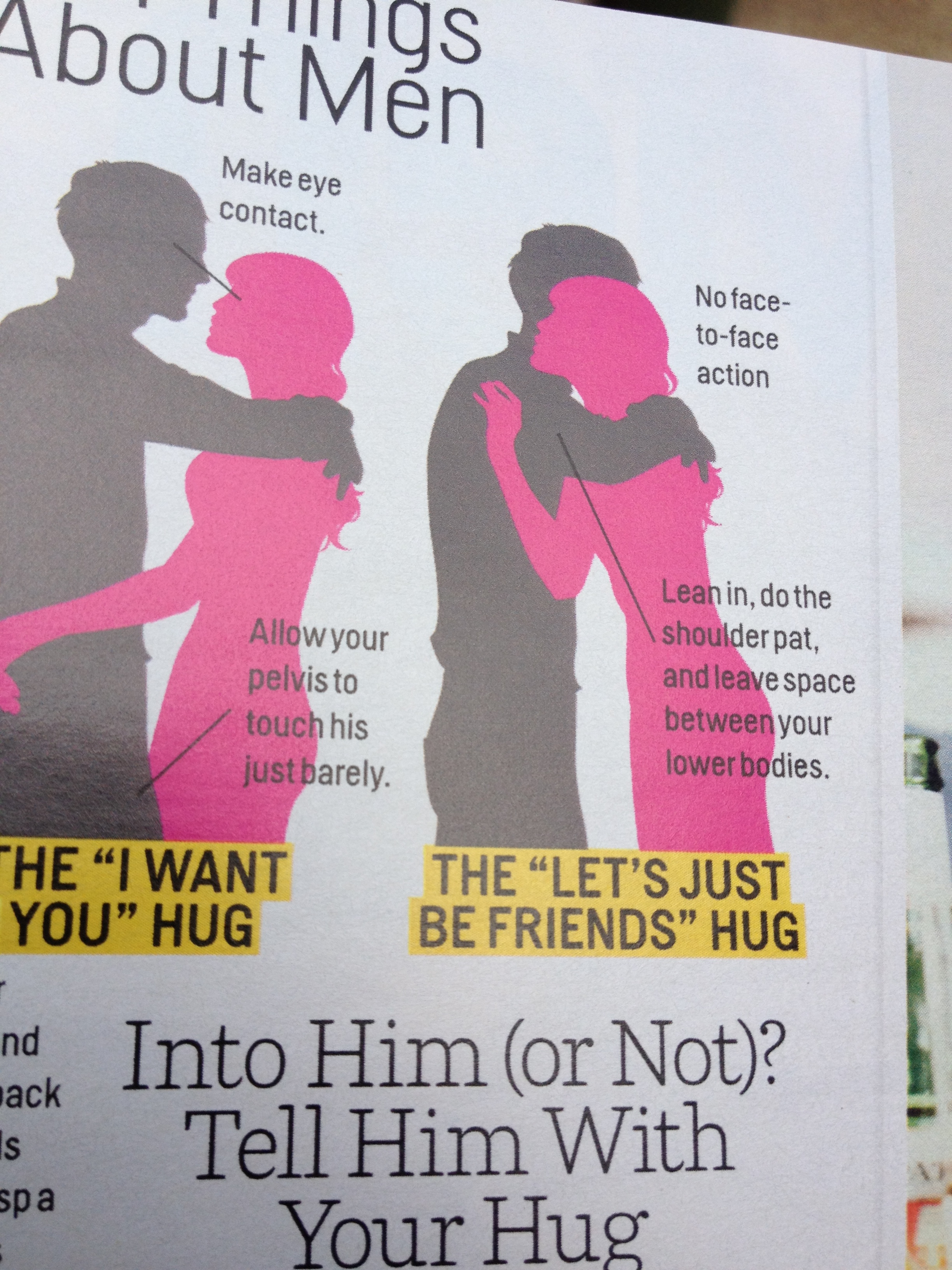 Oh, Mr. Oklahoma of eHarmony. He was like a humble slice of pie to remind me that there are hidden nice dudes in LA. I recently went on a 2-hour date with this guy (USC grad, born and raised in Oklahoma, now works in film) in Santa Monica and while he was perfectly nice and attentive, I just knew by the end of the night that I wasn’t interested in him at all. It all started to awkwardly fall apart at the end of the evening when I politely leaned out to give him a good-bye hug (most likely ass-out, as demonstrated in the picture below) and instead he went all pounce-y and tried to make out with my face. In a last-minute effort to hide from his incoming lips, I turned my cheek so he clumsily kissed my cheek. And when I tried to run off, he called after me, “I’d love to see you again!” and I replied with a “Umm…just text me. Bye!” Sure, maybe I should have just stood my ground right then and there and said, “No thanks, I’m not interested”, but I was just trying to make a quick getaway.