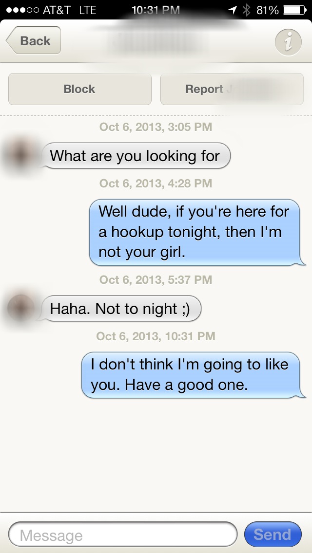 douchebags, online dating Mr. Blunt. October 7, 2013 Wander Lost Blog Leave a comment This Tinder conversation is proof of: 1) Why I’m still single. 2) The quality of men on Tinder. 3) How much I hate bad grammar. Share this: Click to share on X (Opens in new window) X Click to share on Facebook (Opens in new window) Facebook Like Loading... Related